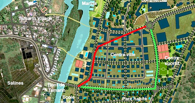 Village intégré des Jhuboo: la route principale de Tamarin déviée