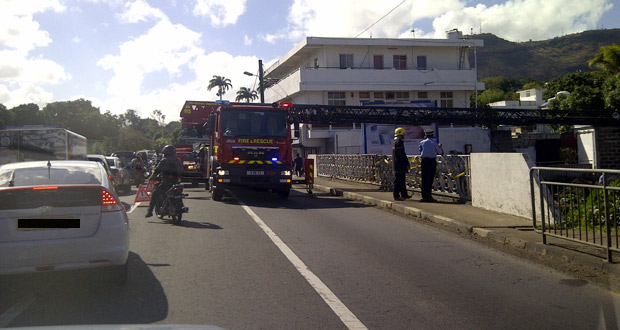 Exercice de simulation : un camion de pompier bloque la circulation à GRNO