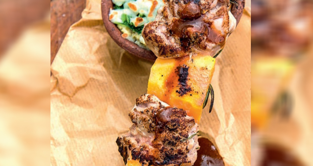 Chill around the grill: Brochettes de poulet et papaye mi-mûre