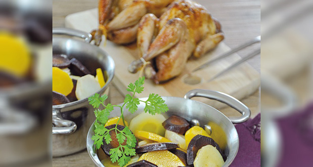 Recette : Cocotte de légumes anciens glacés au miel et cailles rôties