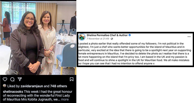 À Londres: une star de la cuisine regrette d’avoir posé aux côtés de Kobita Jugnauth