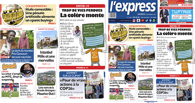 Les grands titres de l'express de ce samedi 6 novembre 2021