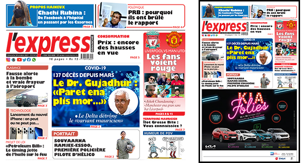 Les grands titres de l'express de ce lundi 25 octobre 2021