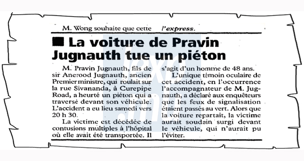 L’accident impliquant Pravind Jugnauth rapporté par l’express en 1996
