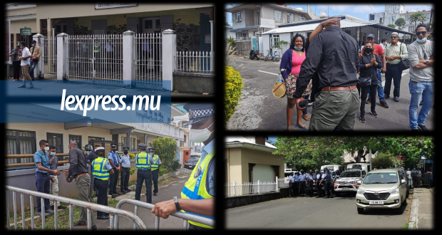 Les ministres Maudhoo et Ramano devant le tribunal de Mahébourg