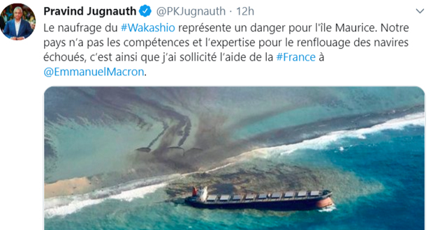 Naufrage du Wakashio: Emmanuel Macron répond au tweet de Pravind Jugnauth