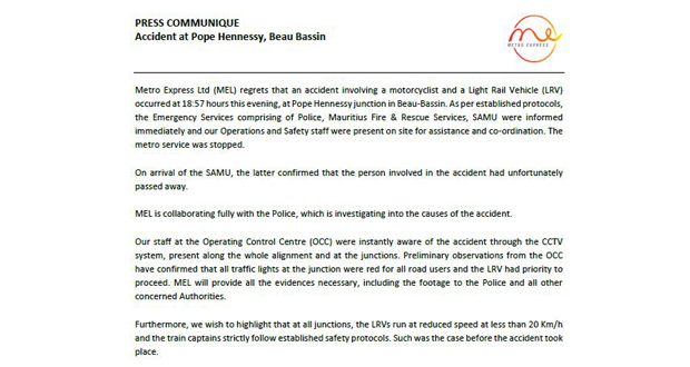 Motocycliste mort dans un accident avec le métro: premier témoignage