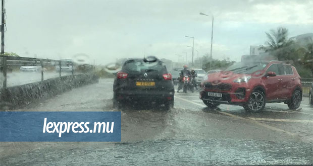 Averses: le rond-point de La Croisette inondé