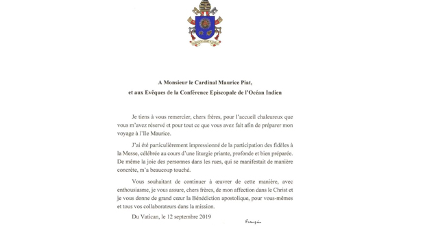 Visite papale: le pape remercie le cardinal Piat et les évêques
