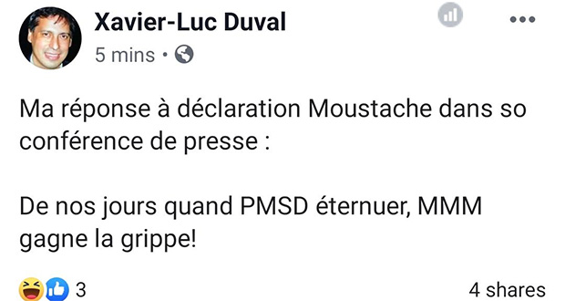 Xavier-Luc Duval: «Kan PMSD éternié, MMM gagn lagrip !»