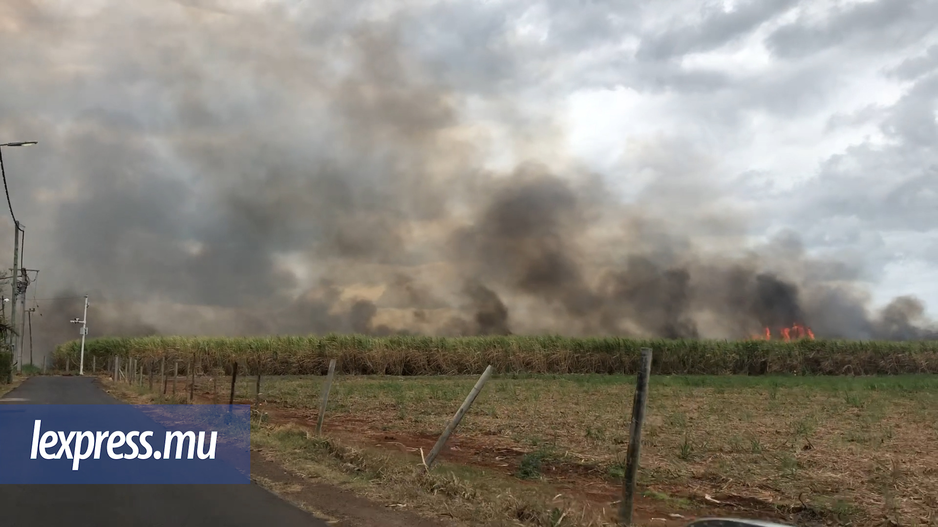 A Baie-du-Tombeau: impressionnant feu dans un champ de canne