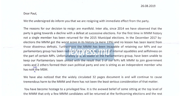 «Déclin du parti»: cinq nouvelles démissions du MMM