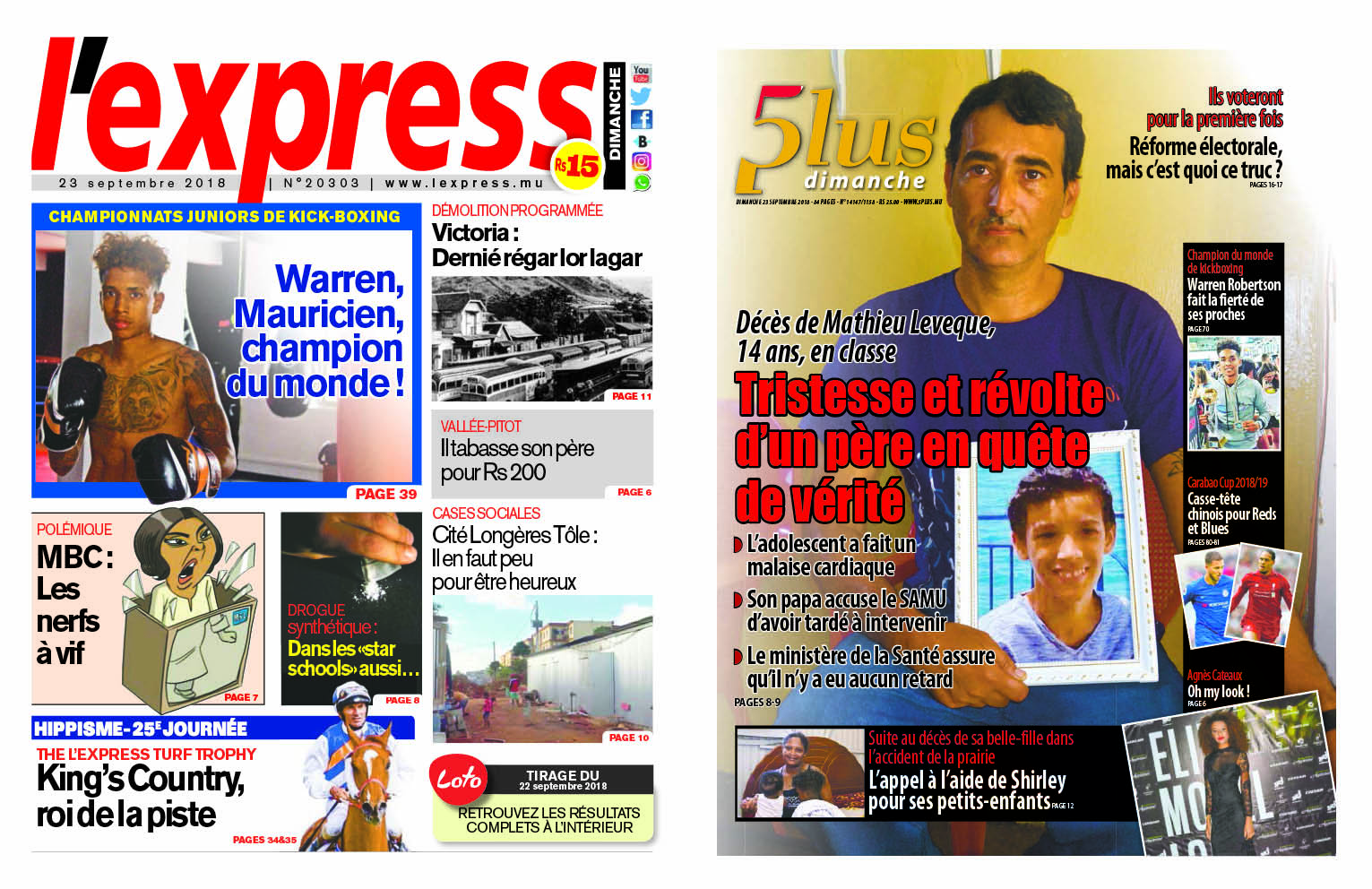 Les grands titres du dimanche 23 septembre