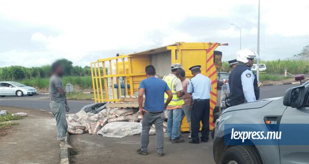 Accident à Triolet: un camion se renverse sur une motocyclette