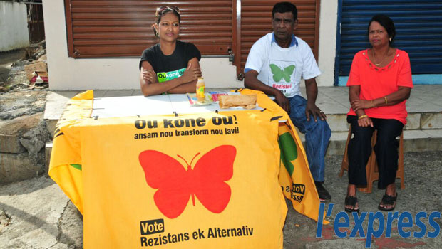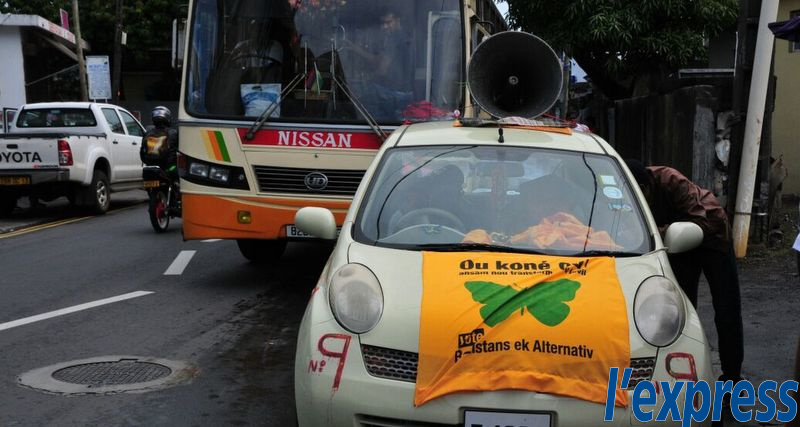 14 heures : Rezistans ek Alternativ met tous les moyens en œuvre pour attirer les électeurs dans les centres de vote à Quatre-Bornes.