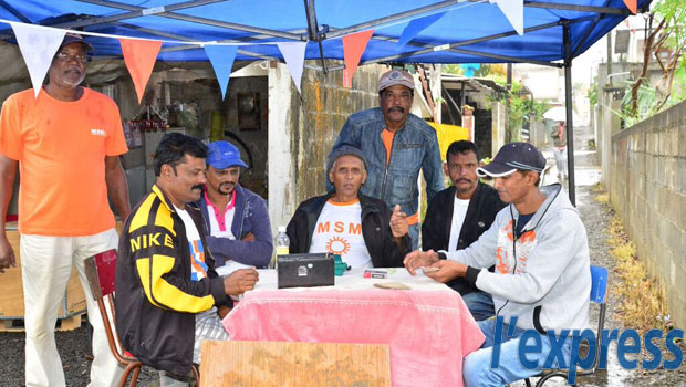 9 heures : A Cité Mangalkhan, Floréal, les partisans de l’alliance Lepep et du MMM s’affairent à installer banderoles et autres affiches.