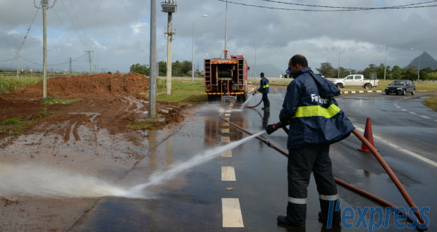 Il s’agissait, entre autres, d’enlever la boue déversée sur la route par les pluies.