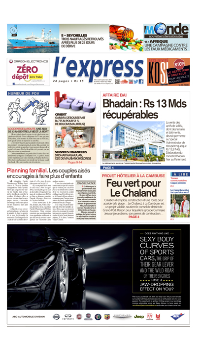 Les grands titres de l’express de ce mercredi 9 septembre