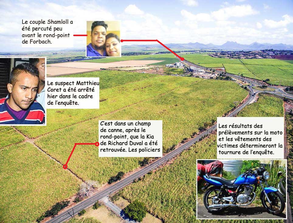 Un des suspects a été placé en état d’arrestation lundi soir, après avoir été interrogé par les enquêteurs du Central Criminal Investigation Department (CCID) aux Casernes centrales. Il s’agit de Matthieu Coret, âgé d’une vingtaine d’années et fils du propriétaire du strip-club Le Rocher, à Grand-Baie. Une charge provisoire d’homicide involontaire a été retenue contre lui. Il aurait avoué son implication dans l’accident.