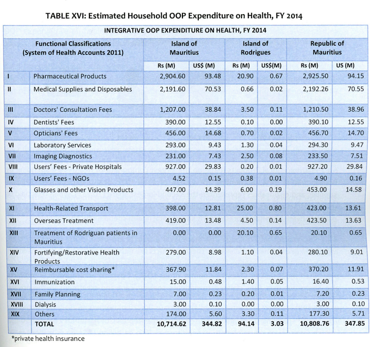 Voir aussi : Le tableau des principales déprenses encourues par les Mauriciens pour ce soigner pour l'année 2014.