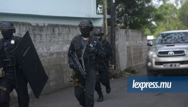 Malgré la tension palpable à cité Ste-Claire, vendredi 18 novembre, l’Anti Drug and Smuggling Unit (ADSU) a donné l’assaut. Cet exercice mené avec le concours des commandos du Groupe d’intervention de la police mauricienne, de la Special Supporting Unit, des chiens renifleurs et le support aérien de l’hélicoptère de la police a abouti à l’arrestation de quatre individus, dont un mineur de 17 ans. Au total, 175 doses de drogue synthétique, d’une valeur d’environ Rs 41 000, ont été saisies.