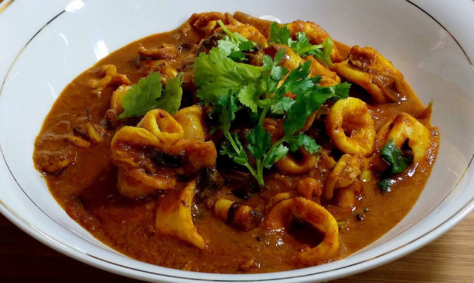Koonthal ullathiyathu (curry de calamar)