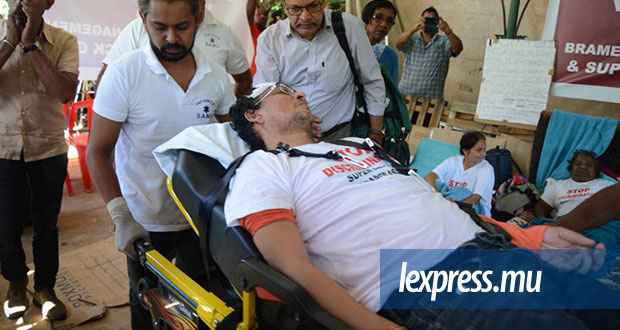L’un des grévistes, Jean Éric, ayant fait un malaise, a été évacué d’urgence afin de recevoir des soins.