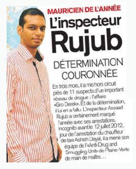 Il a été présenté comme un «fonctionnaire dévoué», «efficace» ou encore «déterminé» par son entourage. L’inspecteur Assaad Rujub était le «jeune prometteur» qui avait épaté ses collaborateurs au sein de la police après son coup de maître qui avait conduit à l’arrestation de Rudolph Dereck Jean Jacques, surnommé Gro Derek, le 27 juillet. Ou encore à celle d’Ashish Dayal, deux semaines avant, et de neuf autres personnes. Il venait alors d’être posté à la tête de l’Anti-Drug and Smuggling Unit (ADSU) de Plaine-Verte. C’était en 2012. Souvenez-vous, il était aussi l’homme de l’année de l’express.