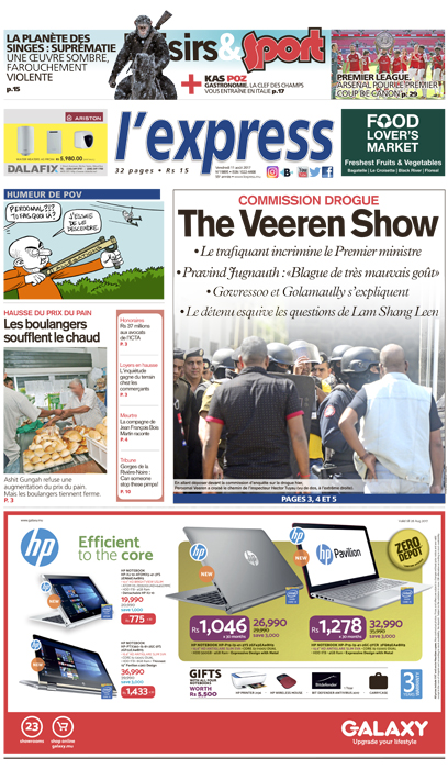 En une : The Veeren Show à la commission drogue. Autres titres : Rs 37 millions aux avocats de l’ICTA et les boulangers soufflent le chaud.