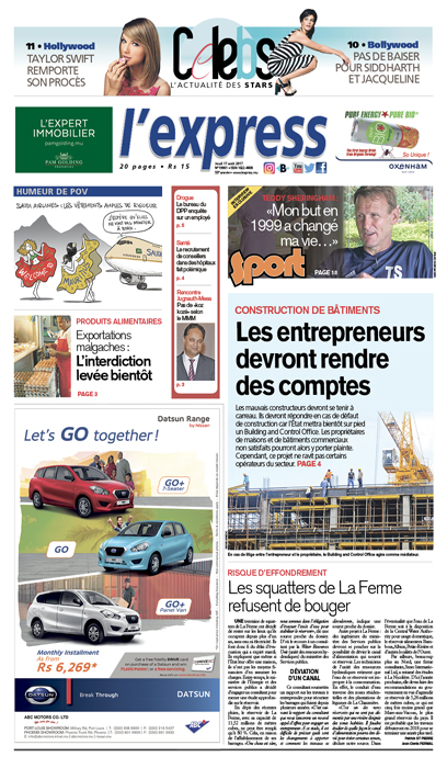 En une: les entrepreneurs devront rendre des comptes au Building and Control Office lors de la construction de bâtiments. Autre titre: les squatters de La Ferme refusent de bouger.
