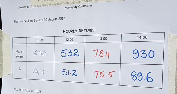 [Mise à jour] Participation importante aux élections visant à renouveler la direction de la Mauritius Sanatan Dharma Temples Federation. À la fermeture des urnes, à 14 heures, ce dimanche 20 août, 930 des 1 080 délégués de 298 Shivalas avaient voté.