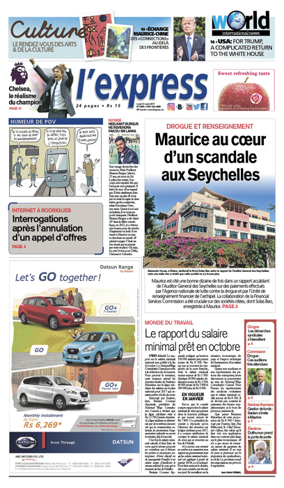 En une, Maurice se trouve au cœur d’un scandale aux Seychelles lié à la drogue. Les autres titres, un Mauricien se noie au Sri Lanka et le rapport sur le salaire minimal national sera publié à la fin d’octobre.