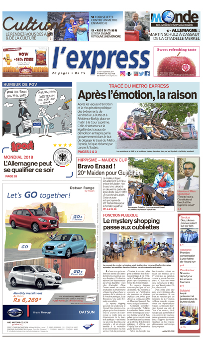 En une: tracé du Metro Express: après l’émotion, la raison. Autre titre: 20e Maiden pour Gujadhur.