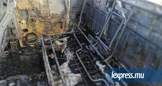 Nos photographes Beekash Roopun et Yudish Ramkhelawon ont pris plusieurs clichés de ce véhicule brûlé.