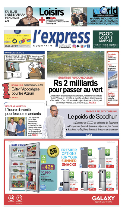 En une: énergies renouvelables – Rs 2 milliards pour passer au vert.