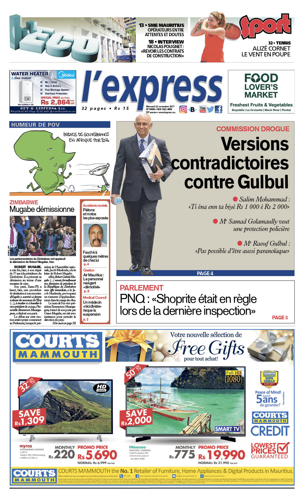 Les grands titres de l’express de ce mercredi 22 novembre