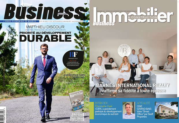Depuis dix ans, poursuit-il, les lignes de crédit Sunref (Sustainable Use of Natural Resources and Energy Finance – programme destiné à favoriser les projets d’investissements verts) ont financé près de 21 MW d’énergie propre, dont le photovoltaïque. Et l’AFD est toujours restée présente, même pendant les périodes où Maurice a connu des difficultés pour accéder aux ressources internationales. C’est ce qui fait la une de Business Magazine ce mercredi 29 novembre, un numéro accompagné du supplément bimestriel ‘Immobilier & Construction’.
