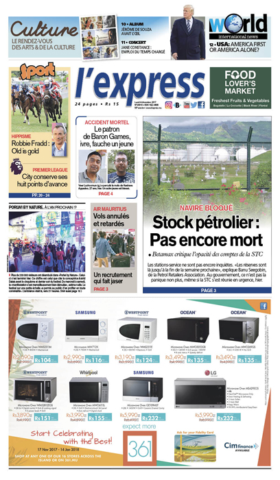 En une : Stock pétrolier : Pas encore mort. Autres titres : vols annulés et retardés à l’aéroport et Porlwi by Nature, c’est déjà fini.