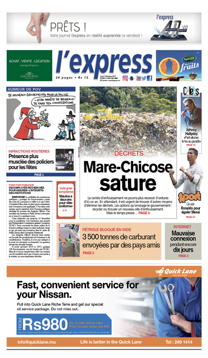 En une: Mare-Chicose saturé. Autres titres : des employés recherchés pour assurer «l’intégrité» des institutions, et mauvaise connexion pendant encore dix jours.