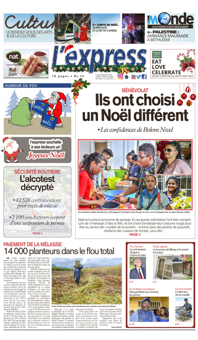 En une : Ils ont choisi un Noël différent. Autres titres : 14 000 planteurs dans le flou et l’alcotest décrypté.