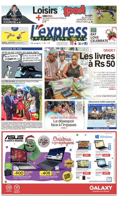 En une: des manuels scolaires pour le Grade 7 à Rs 50. Autre titre: le désespoir face à l’impasse pour les employés des usines Texto et Bedino.