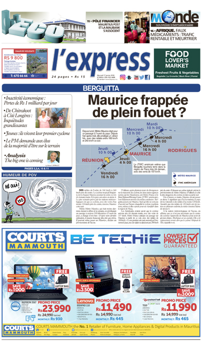En une: Maurice frappée  de plein fouet par Berguitta ?