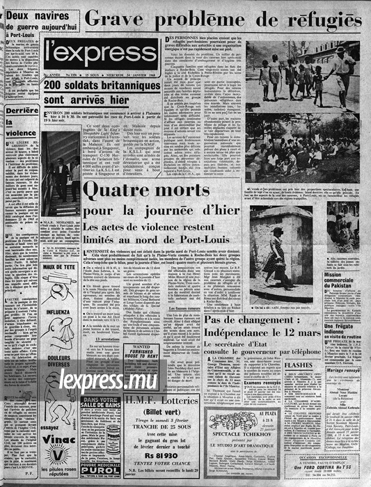 Devant la montée des tensions à travers l’île, Abu Subratty et M. Peerboye avaient essayé d’aller calmer les esprits à Ste-Croix. Mais la situation a dégénéré. Abu Subratty a été tué tandis que son ami a été sauvé de justesse. D’ailleurs, dans l’express, les rumeurs concernant le décès de ce dernier sont démenties. Dès lors, les frictions atteignent un nouveau pic.