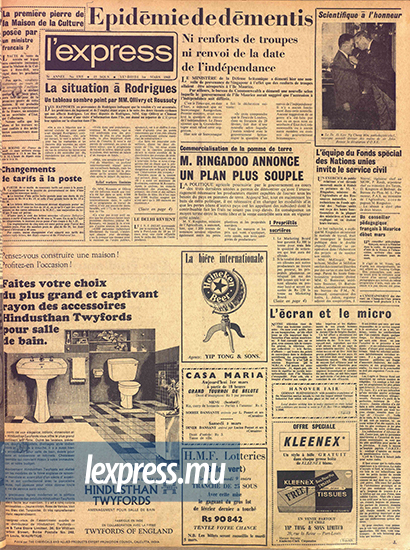 <p>Passer en revue les unes des journaux de 1968, c’est aussi replonger dans la pagaille au niveau de la maquette des débuts de la presse indépendante. À une époque où Maurice n’est encore qu’un petit point sur la carte aux yeux du monde, actualités nationales et internationales se cô- toient en première page. Ainsi, peuton lire d’emblée les dernières actualités de Hong Kong, caracolées aux derniers préparatifs de l’Indépendance de Maurice. Cinquante ans plus tard, les nouvelles nationales priment. Oust ! l’actualité internationale, qui se retrouve relayée aux dernières pages. Ironie du sort, Maurice n’a jamais été plus connecté au monde. Avec le développement des communications et d’Internet, les Mauriciens ont, eux aussi, rejoint le <em>«village mondial»,</em> selon la célèbre expression du théoricien de la communication, Marshall McLuhan. Un changement d’échelle qui n’est pas sans conséquence, puisque d’isolé Maurice est passé à un pays ultra connecté, et donc soumis bien plus qu’avant aux soubresauts de l’actualité internationale.</p>