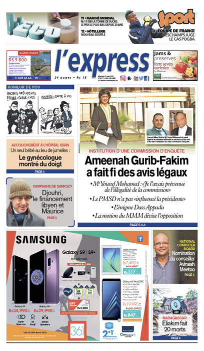 En une: Institution d’une commission d’enquête – Ameenah Gurib-Fakim a fait fi de ses avis légaux