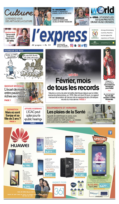 À la une: météo – février, mois de tous les records. Autre titre : équipement et horaires – les plaies de la Santé.