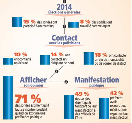 Le cabinet Straconsult a réalisé un sondage sur un échantillon de 1 200 Mauriciens, en octobre 2017. La relation des sondés avec la politique en était l’un des thèmes. Ci-après, les résultats relatifs à l’attitude des Mauriciens par rapport à la politique.