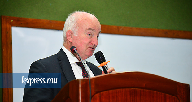 Le professeur français Jean-Pierre Magnan à un atelier de travail à l’université de Maurice le 3 mai 2018. © Beekash Roopun