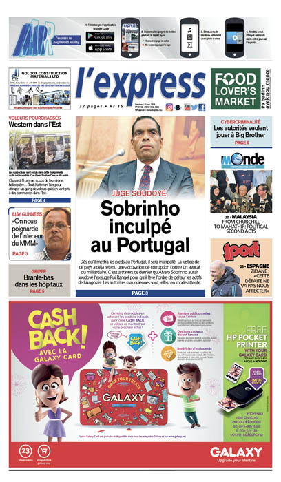 À la une: juge soudoyé – Sobrinho inculpé au Portugal. Autre titre: voleurs pourchassés – western dans l’Est.