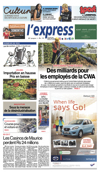 L’hôtel du gouvernement estime que la Central Water Authority devra payer des «milliards de roupies» avant de signer avec sin partenaire stratégique. En cause : les employés qui partiront à la retraite et ceux qui ne voudrons pas changer d’employeur et seront dédommagés. La Banque mondiale, en visite la semaine dernière, se penche sur cette question.
